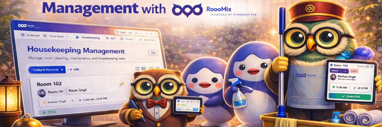 Manage Bookings, Guests, Housekeeping, Kitchen, and Billing from one Powerful Dashboard.